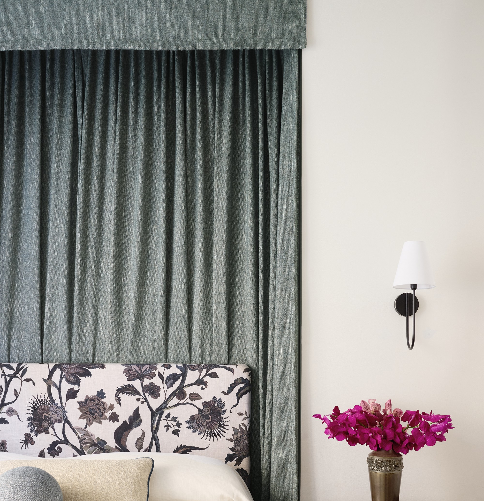 Looken Elegant är en diskret och modern look som med sitt tidlösa uttryck kan anpassas till en mängd sovrumsstilar beroende på val av gardin och färg. De vinklade hörnen klär in sängen och förstärker dess position i rummet, utan att ta upp extra utrymme.