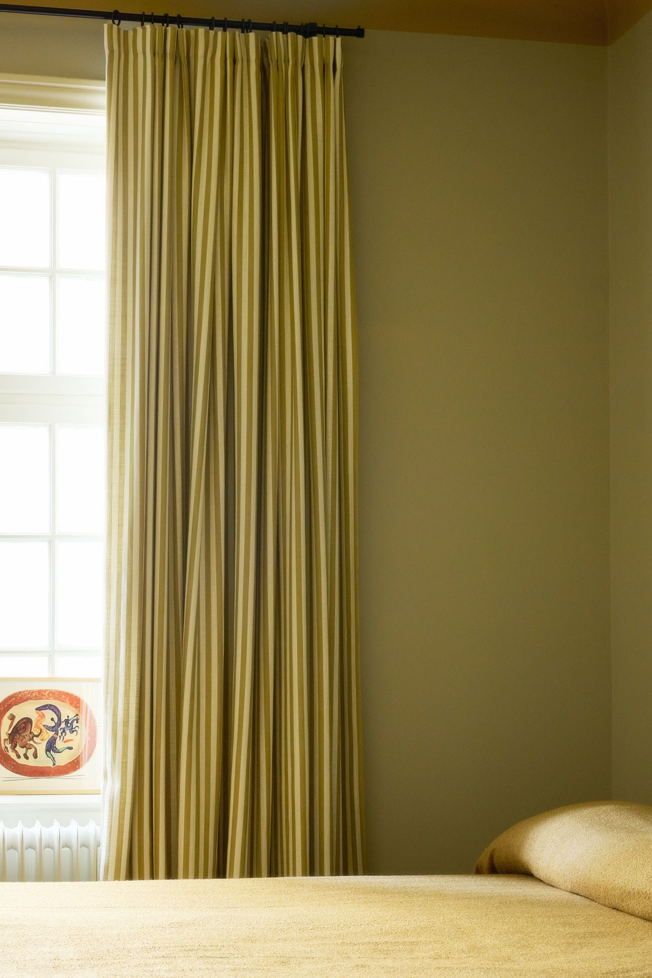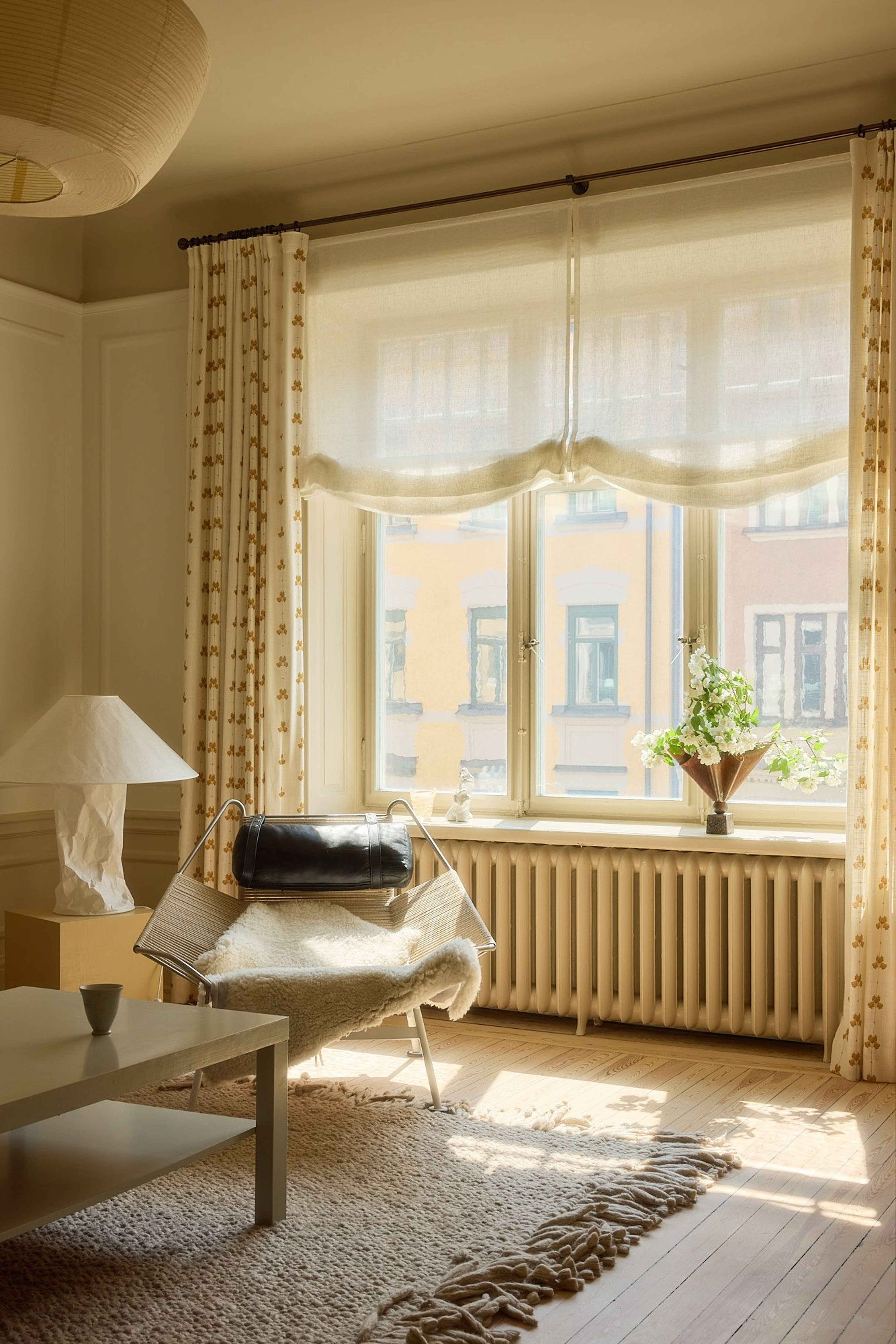 As spring evenings grow longer, blackout becomes part of everyday comfort. Proportion is key, mount curtains high, close to the ceiling, and extend them generously beyond the window frame. This approach enhances light control while introducing a more textile, hotel-inspired atmosphere. The curtain becomes an architectural element, framing the entire wall rather than just the window.