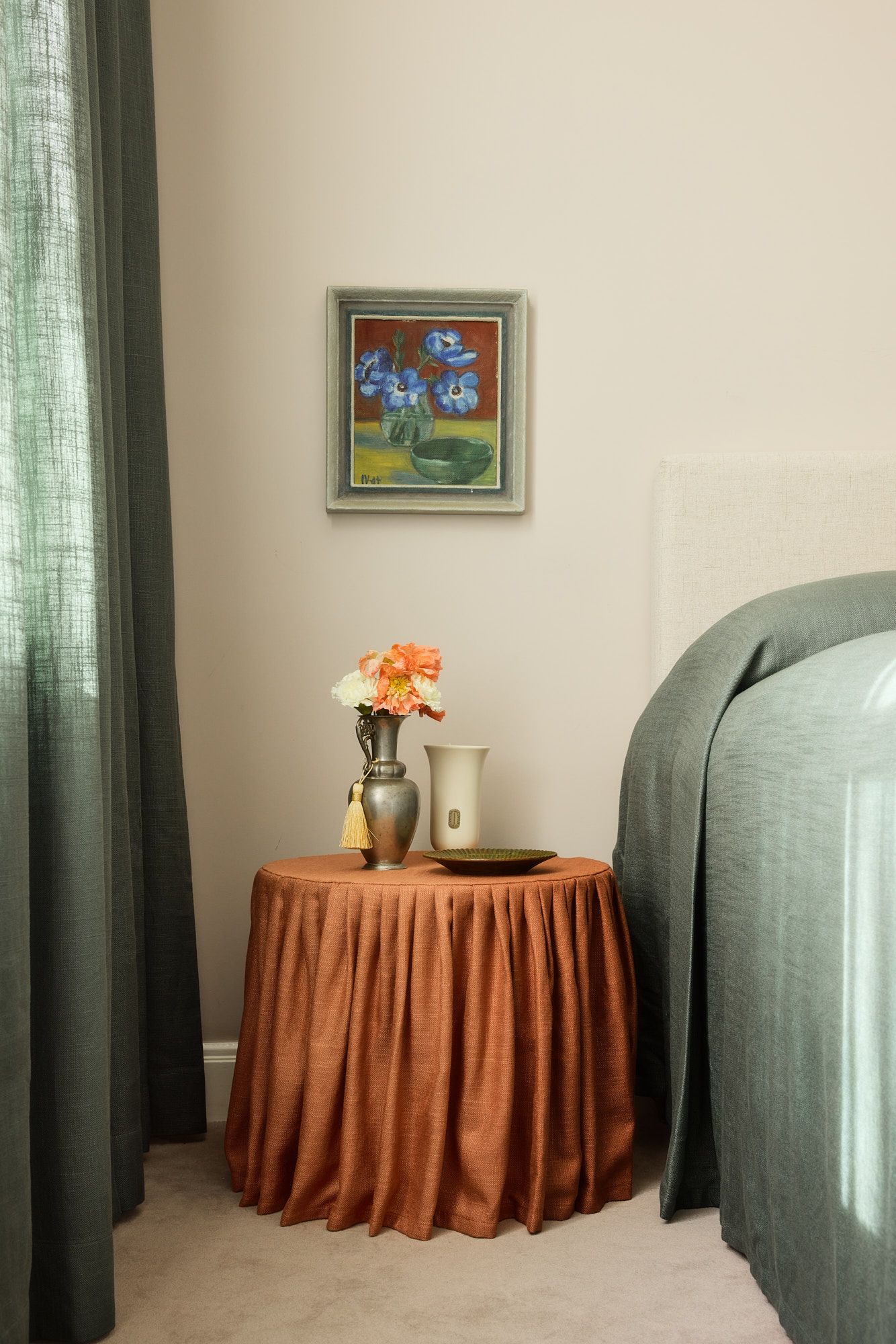 Coordinating curtains and bedspreads in matching tones or patterns creates a cohesive interior, giving the room direction and clarity. Whether precisely matched or subtly aligned through colour, the effect is understated but essential to a considered space.