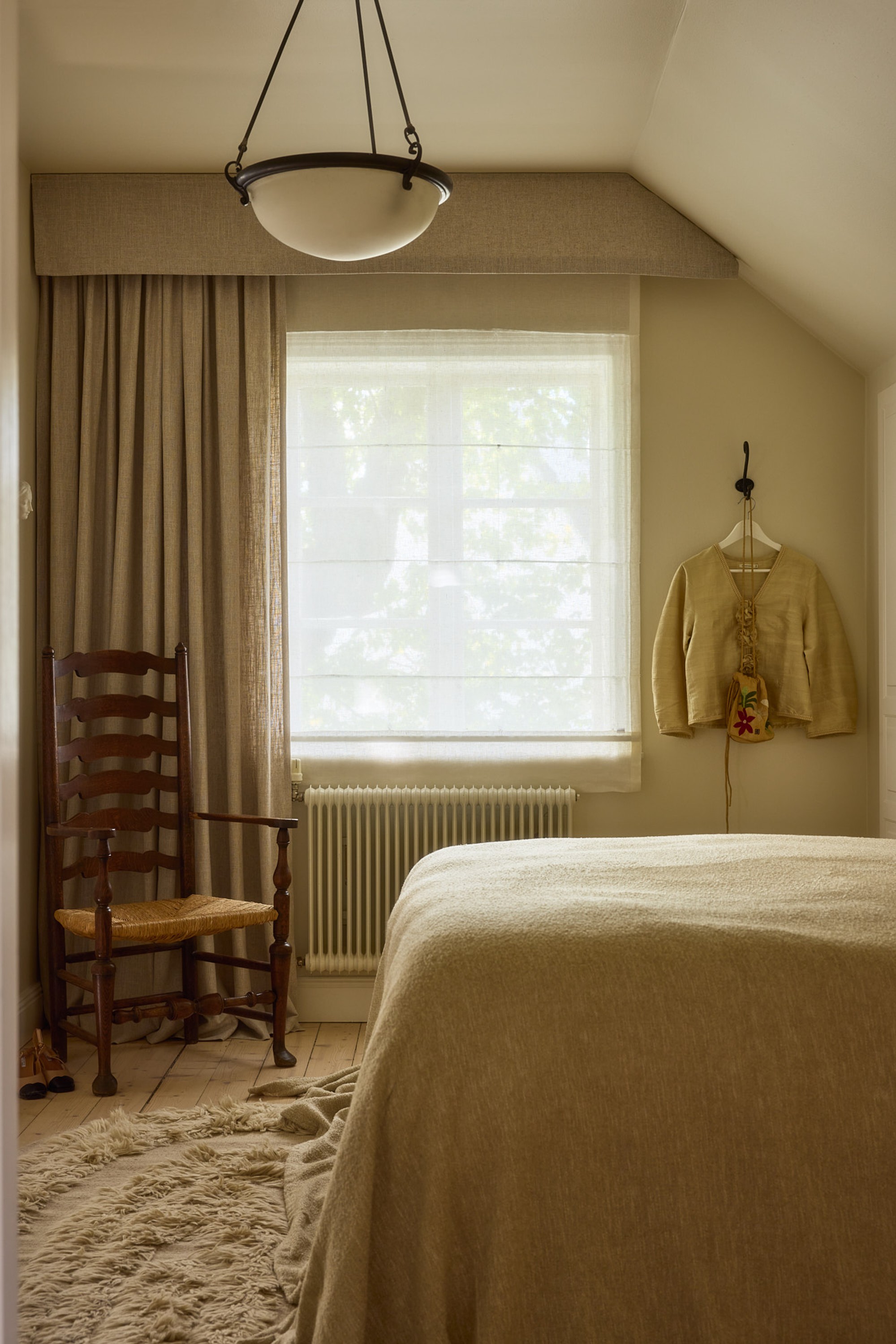 Curtains can do so much more than simply frame a window - and autumn is the perfect time to create cozy hideaways. With a wall-mounted valance with waves combined with a length of woven linen, you can create an inviting bed nook. Adjust the color and shape, and it works just as beautifully in a child’s room as in a master bedroom.