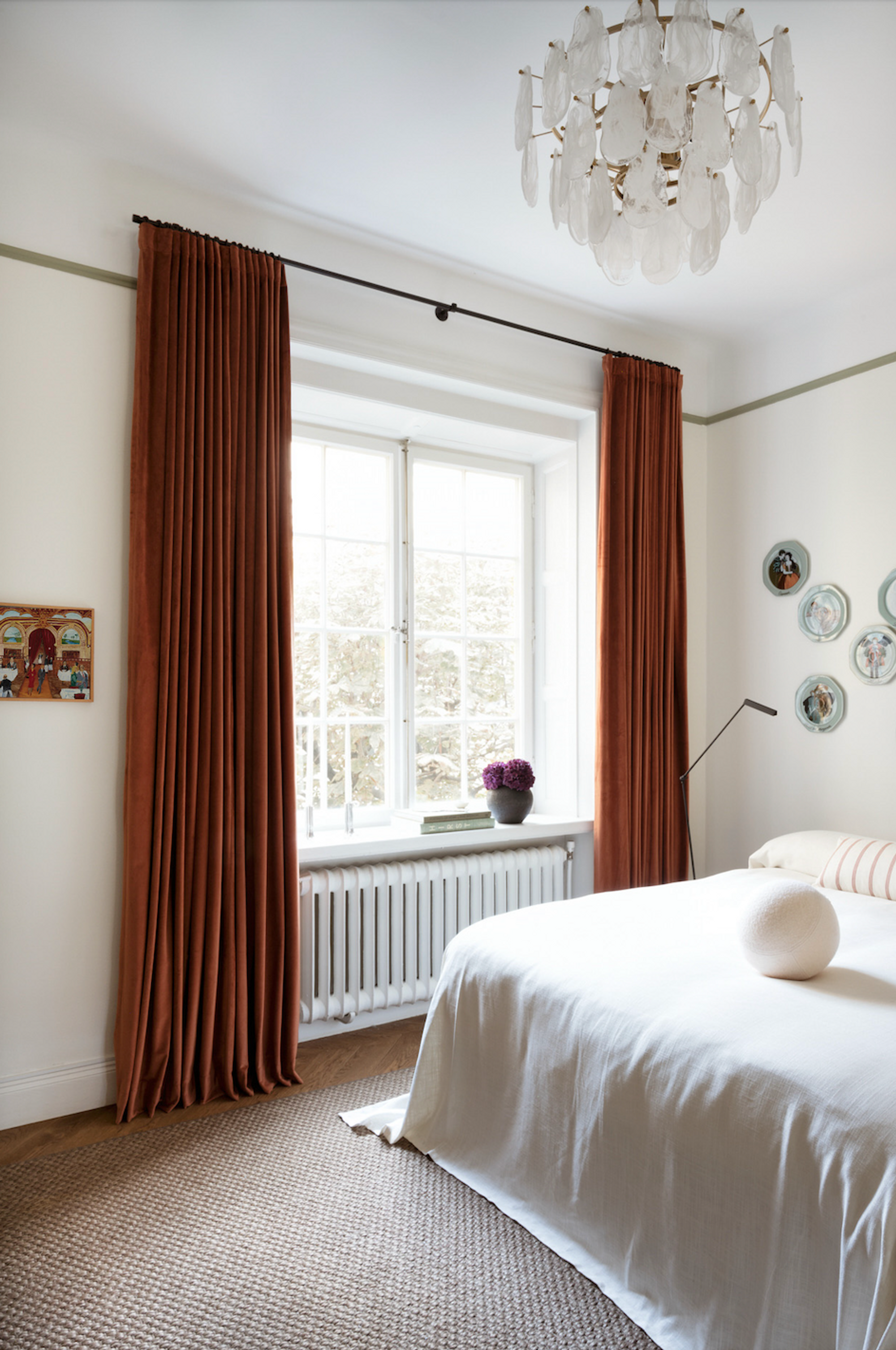 Go for one statement detail in color, like a curtain, carpet or piece of furtiture, instead of adding many small details, like vases and pillows. It might feel scary, but the final result is often more coherent!