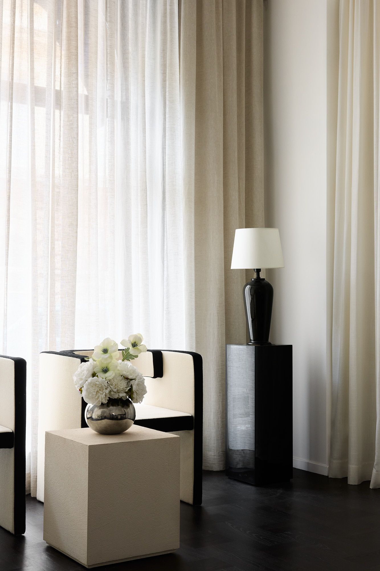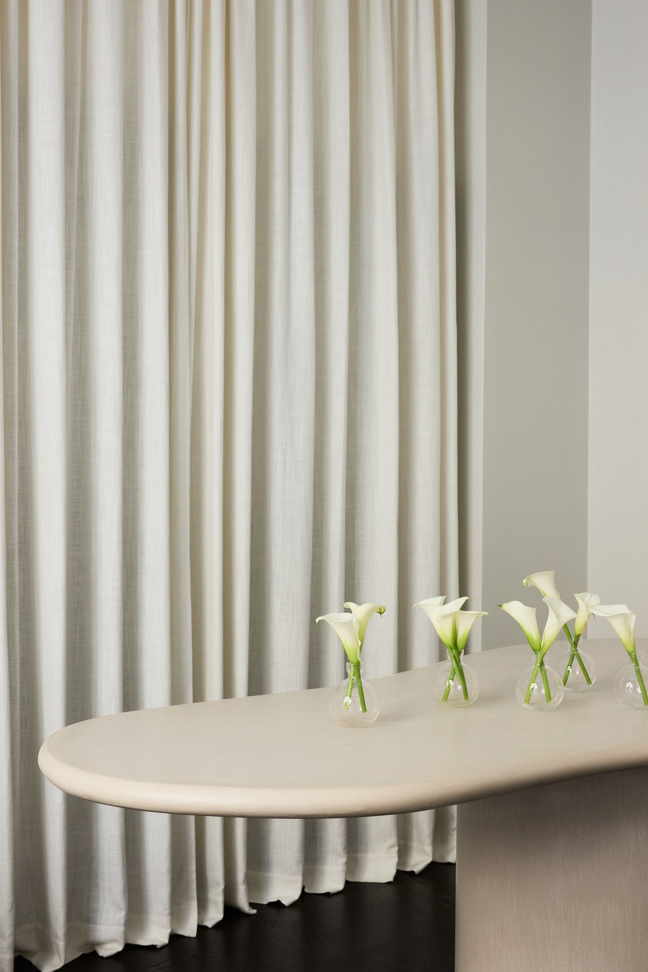 An office often means spaceaous rooms with many people, which is why textiles are key in more places than just around windows. Drape, sound proof and create a warm feeling by hanging custom made curtains along a whole wall - beautiful and effecient!