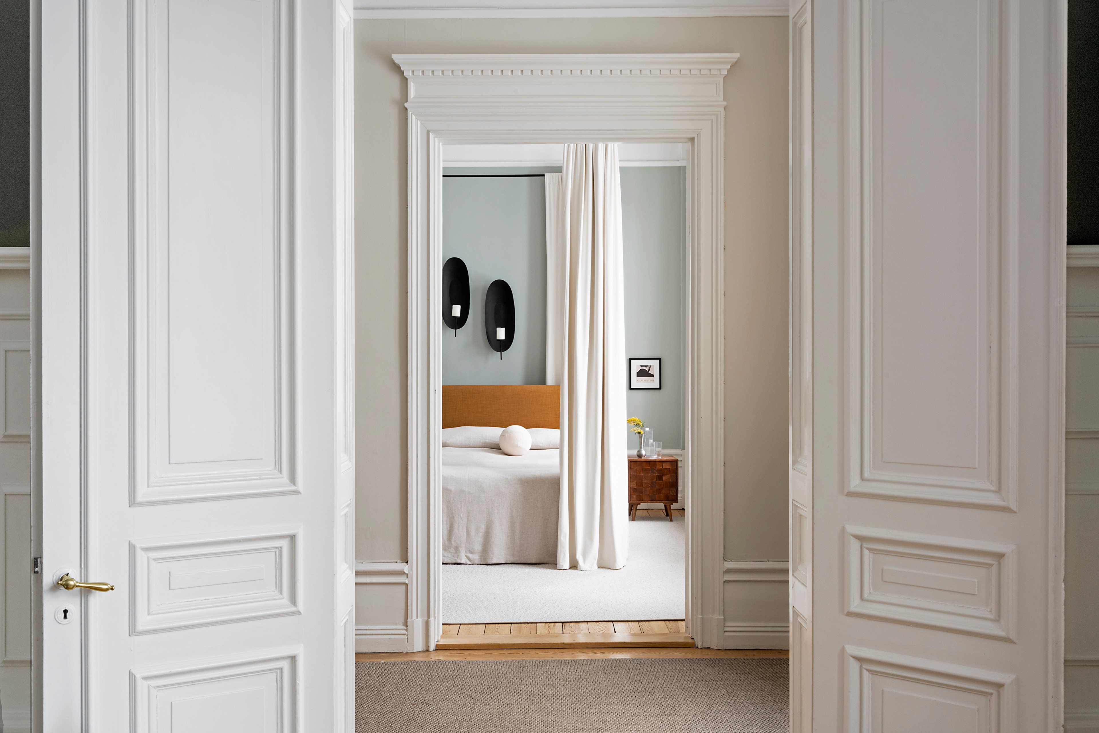 The turn-of-the-century apartment in Vasastan was originally a churchmaster's residence, but when it finally went on sale two years ago, it could not be resisted by its current owner. From the first time she stepped into the apartment, she saw the potential, with spectacular pillars, herringbone parquet and original details, but much also needed to be updated and renovated. A summer, a bathroom, a kitchen and many hours with the paintbrush in hand later, the apartment had been filled with more color and textile than it had ever been before! From light thin linen curtains in the kitchen to a paradise of velvet in the bedroom - here lives undoubtedly a person who knows her curtains.