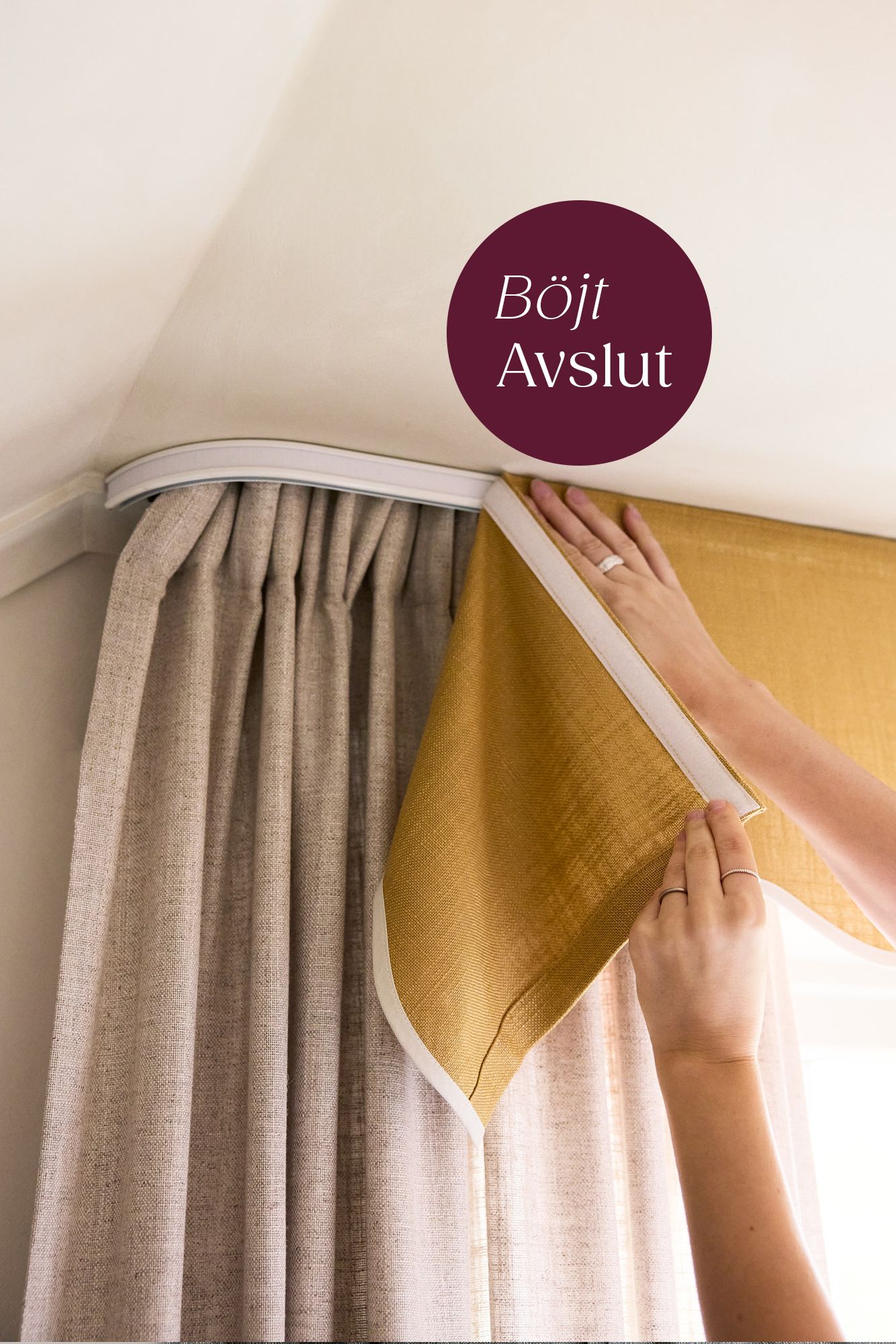 - Gardinkappa med Våg i Senap/Sand med Böjt Avslut.