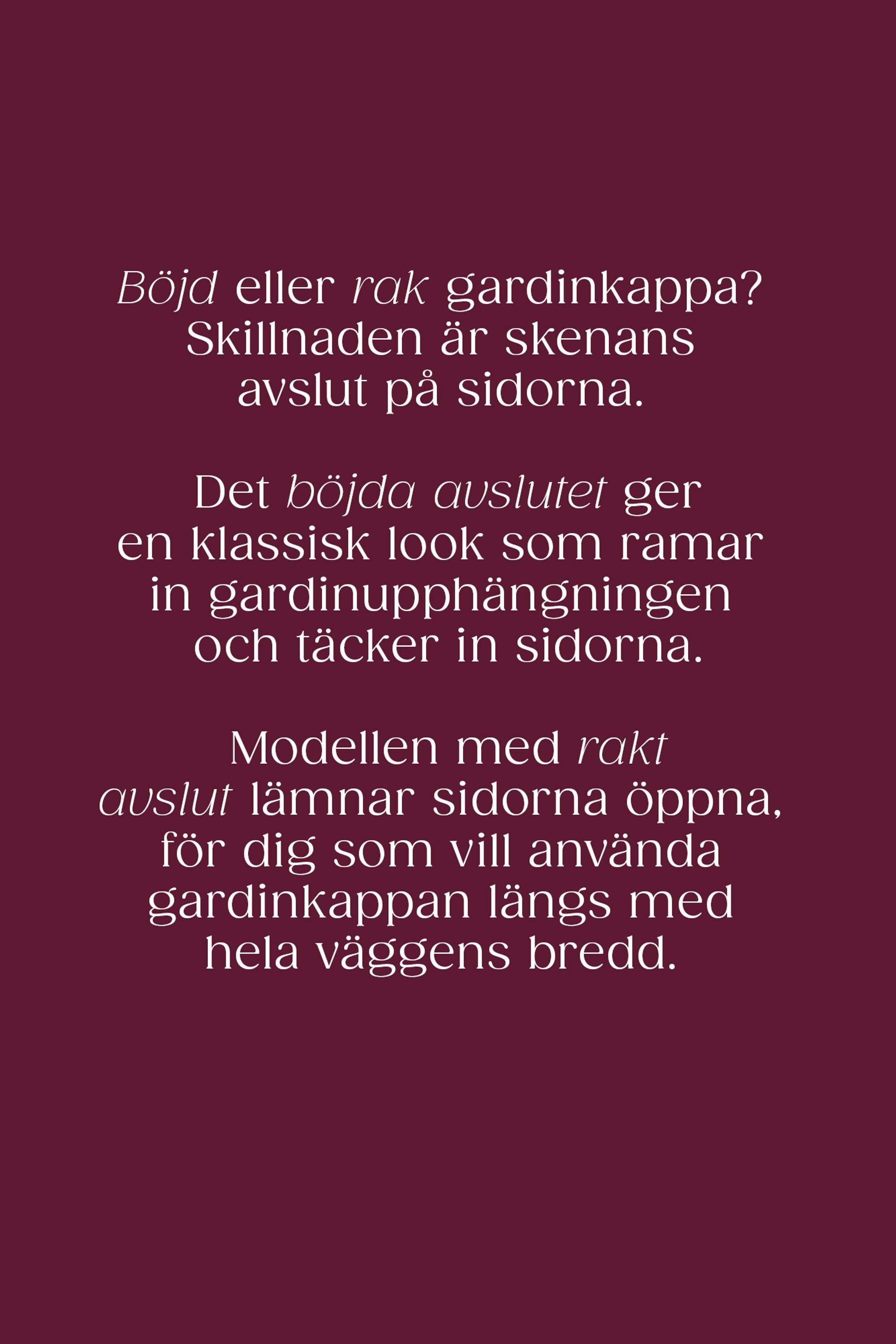 - Gardinkappa med våg i senap/sand med böjt avslut.