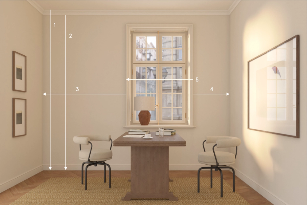 För att vi ska kunna ge dig de bästa förutsättningarna inför din gardinplanering, ber vi dig att sammanställa nedan mått för de rum där du önskar gardiner. Våra gardinexperter kommer sedan att hjälpa dig att skapa en skräddarsydd plan utifrån dina behov och drömmar, och presenterar sedan ett komplett förslag.