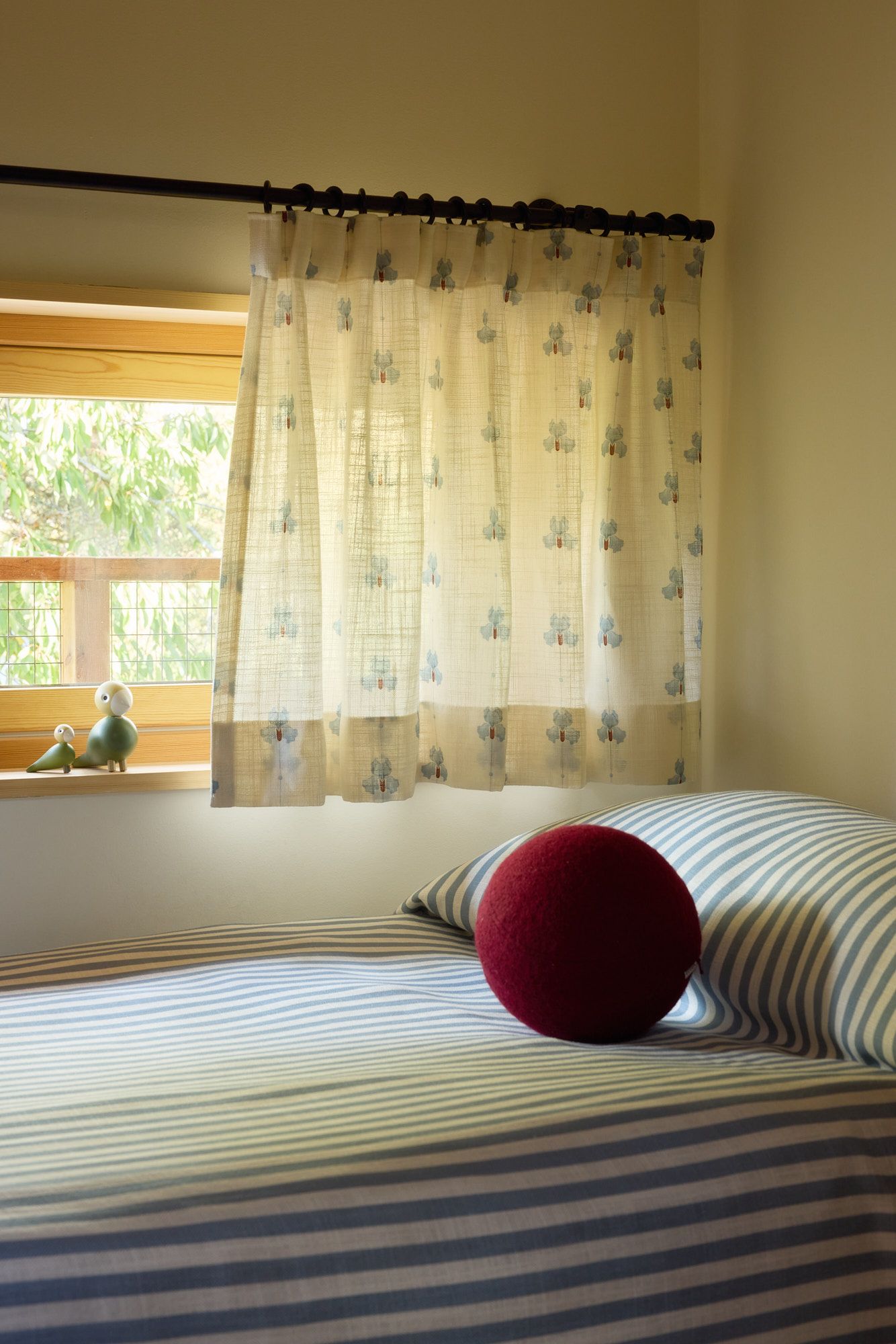 Next to the master are the children’s rooms, two smaller spaces with elongated windows. Here, Frida has chosen patterns from the Cottage Collection: Cottage Sweet Pea in dove blue, bringing life and character to the rooms. The shorter curtains, hung on rods above the beds, create a cozy nook-like feeling for the children.