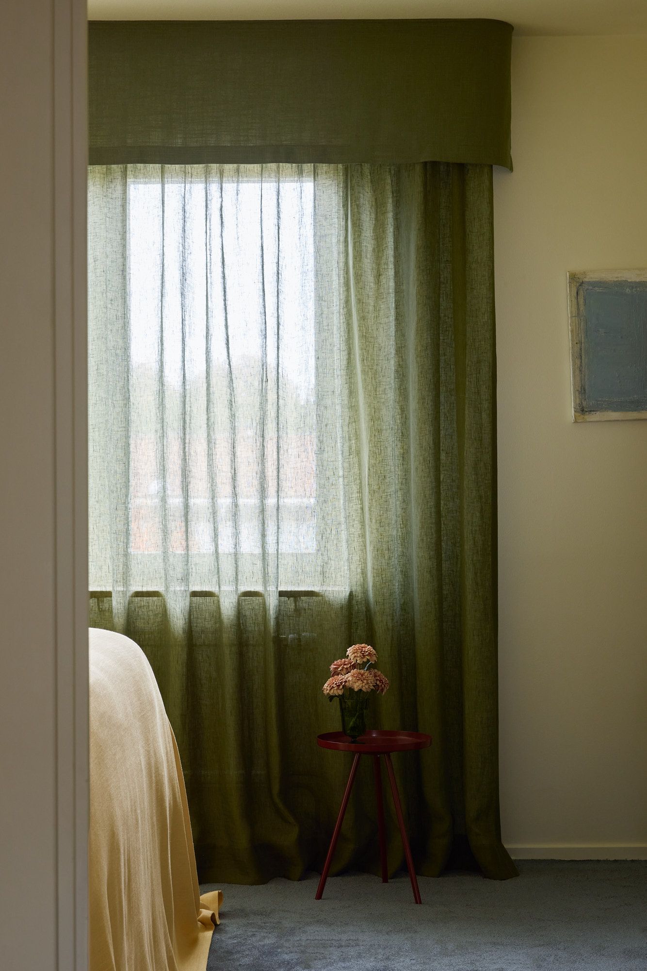 1. Let the curtains carry the color - In most rooms, muted and timeless wall colors create a calm foundation. By allowing the curtains to introduce the stronger tone, the color feels intentional and grounded rather than overwhelming.