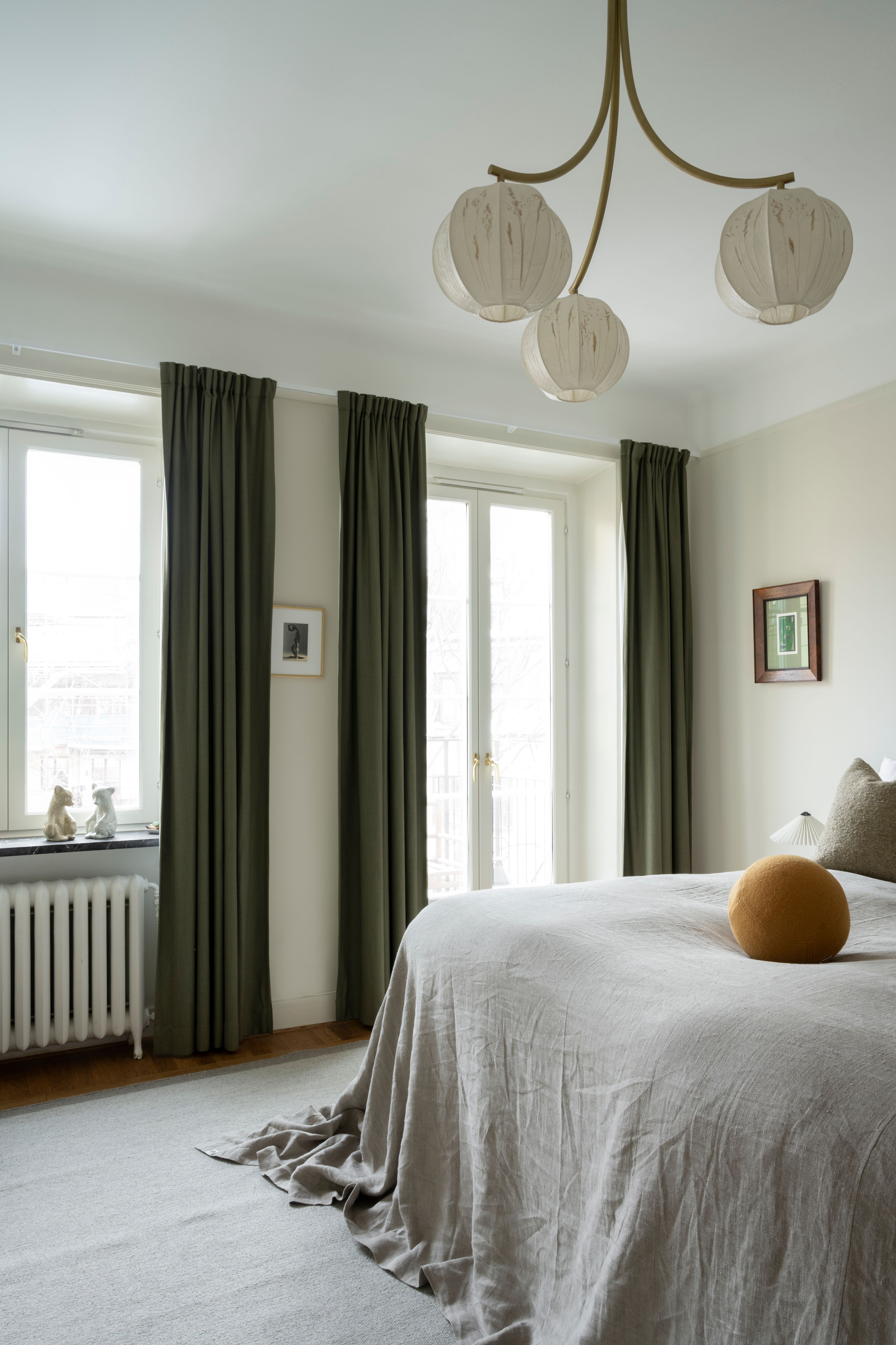 In the bedroom we participated in great debates regarding the color of the black out curtains last time we were here, where team Gotain unanimously voted for the color Khaki. Michaela was also feeling it, but was at the same time hesitant that the color might be too dark. Today we can see that it turned out just as beautiful as we had imagined it, and thank god Michaela and Andreas both agree!