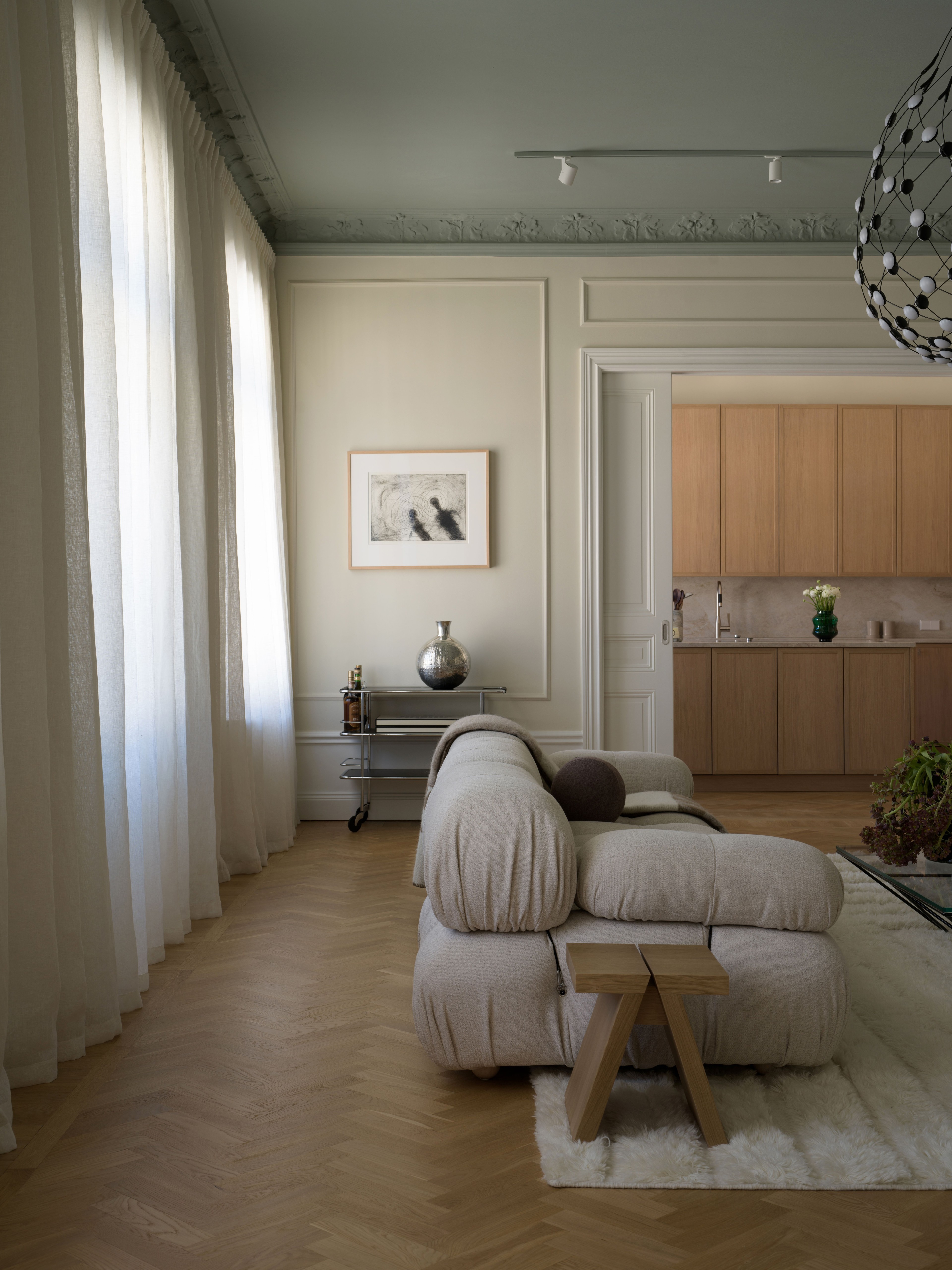 When we step into Michelle and Davids apartment on Östermalm, the first thing that strikes us is how the sun completely drenches the space. Could this be where they keep the light - absolutely!