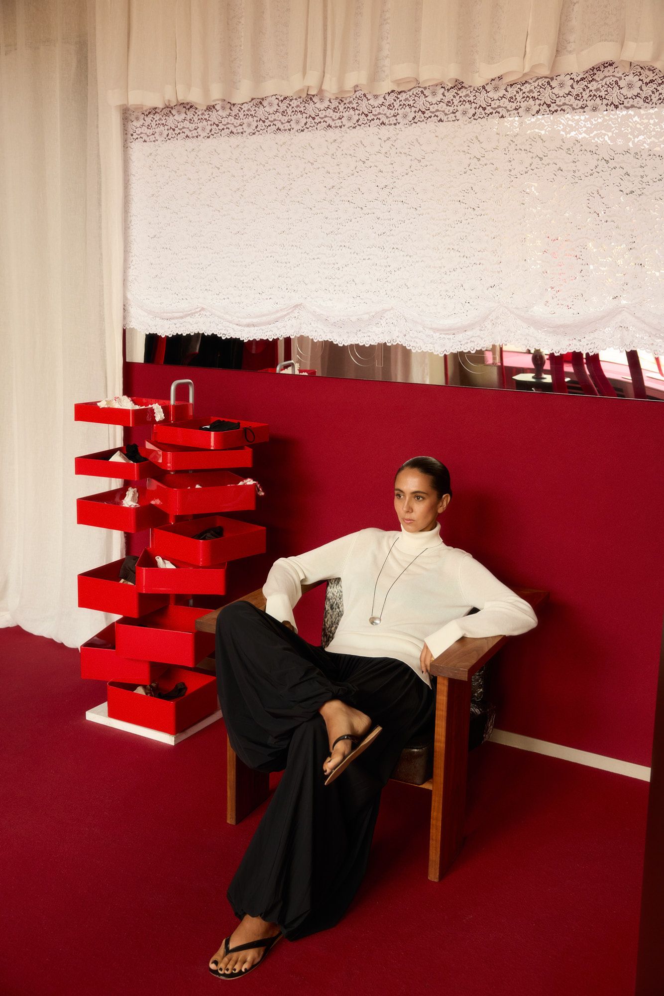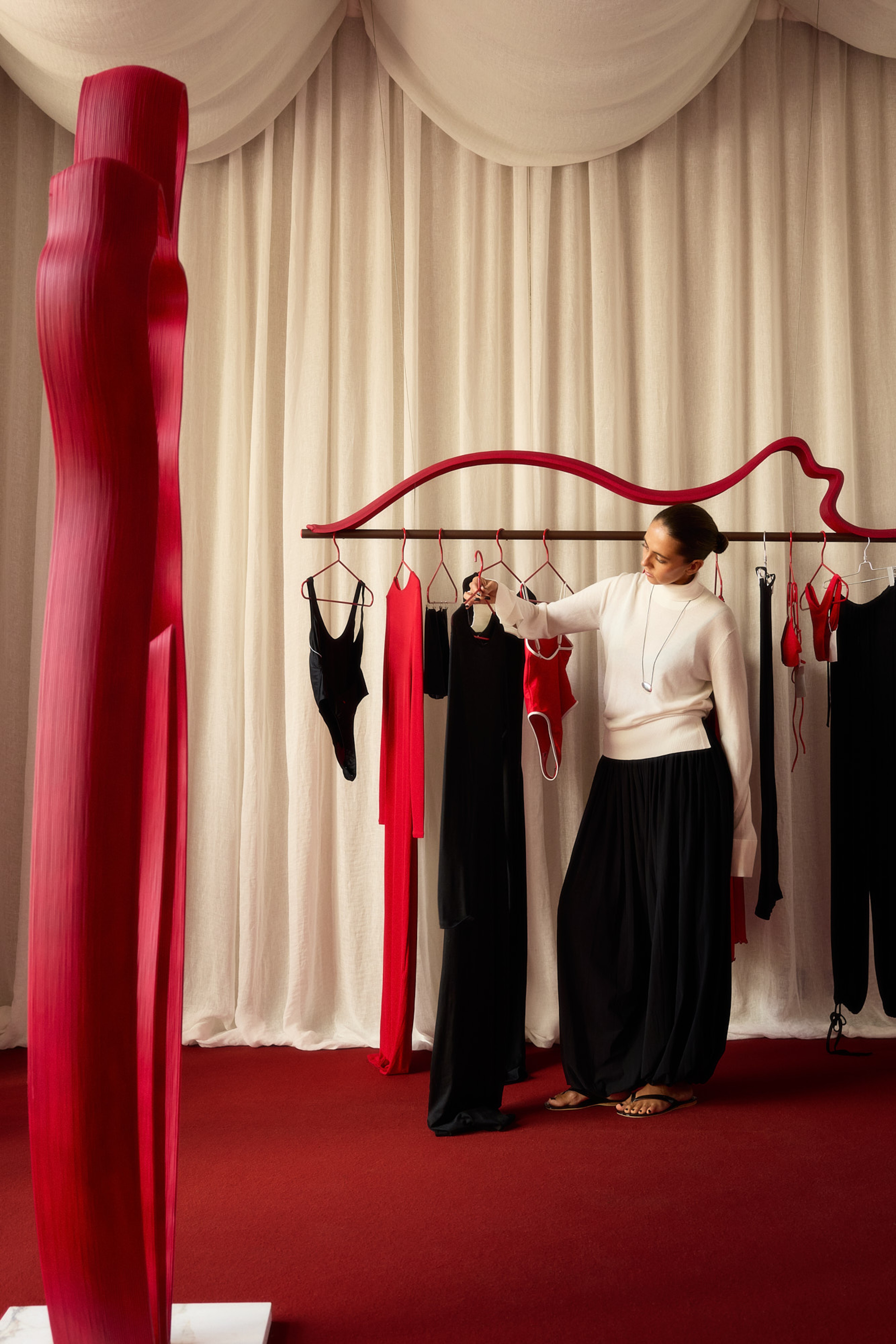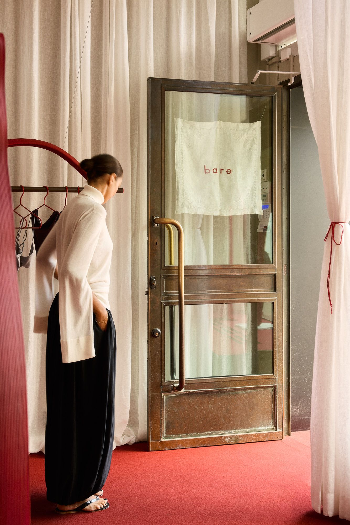 It was out of a shared love of high-quality fabrics that Bare and Gotain came together. For the brand’s first physical expression, the pop-up space was draped from floor to ceiling in flowing waves of Gotain’s sheer linen, woven in Europe from 100% French flax. The result was an airy setting where the textiles themselves took center stage.