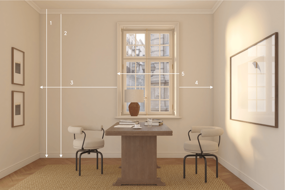 In order to provide you with the best possible service durting your curtain planning, we kindly ask you to gather the measurements below for the rooms where you wish to have curtains. Our curtain experts will then assist you in creating a tailored plan based on your needs and dreams, and will present a complete proposal after the meeting.