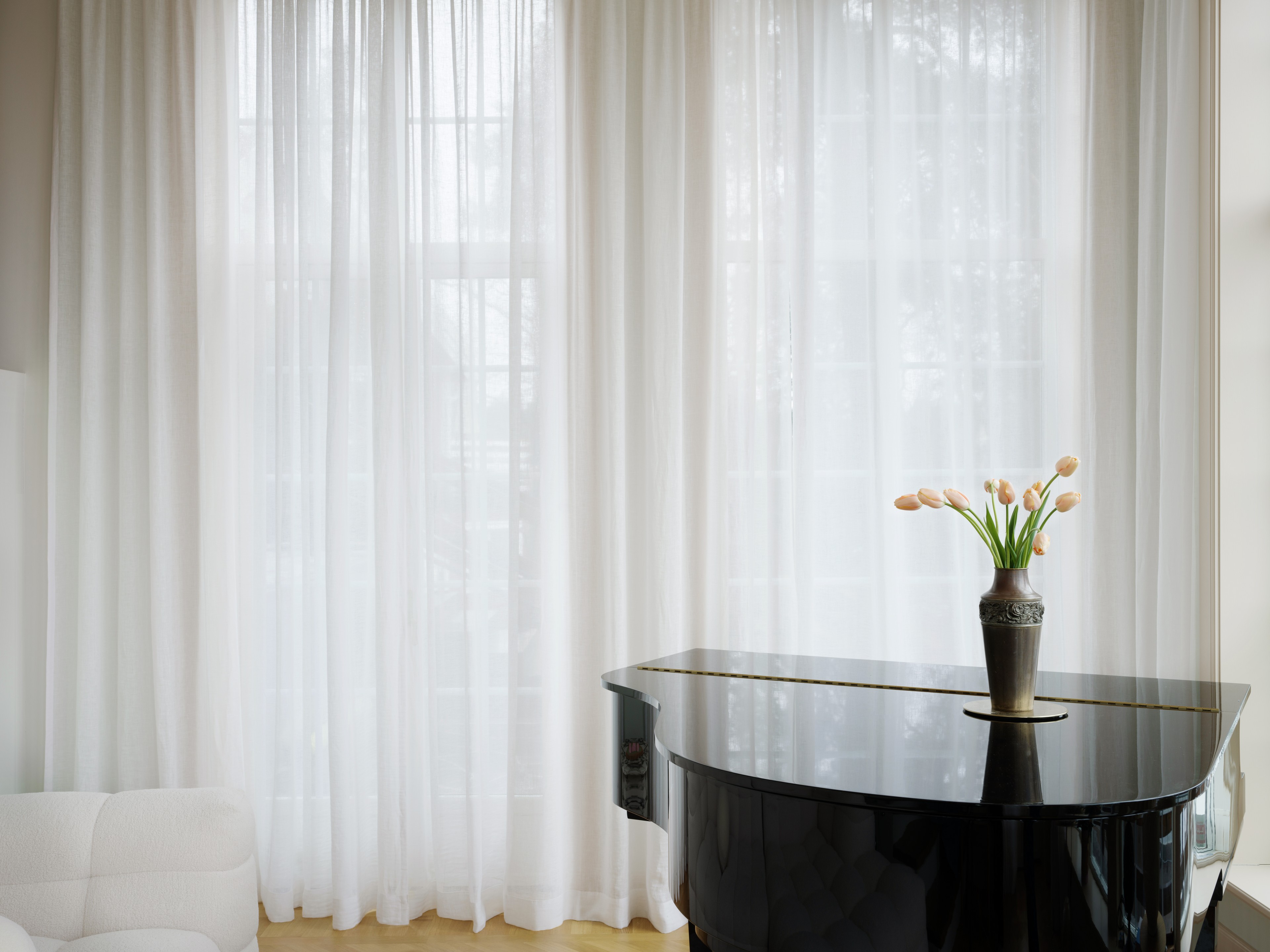 This combination is often called a hotel-look and thanks to the double layers makes it possible to choose hos much light admission you want. By closing the sheer layer, the sunlight is filtered but not limited and by closing the blackout layer you can easily transform day into night (perfect for a teenager).