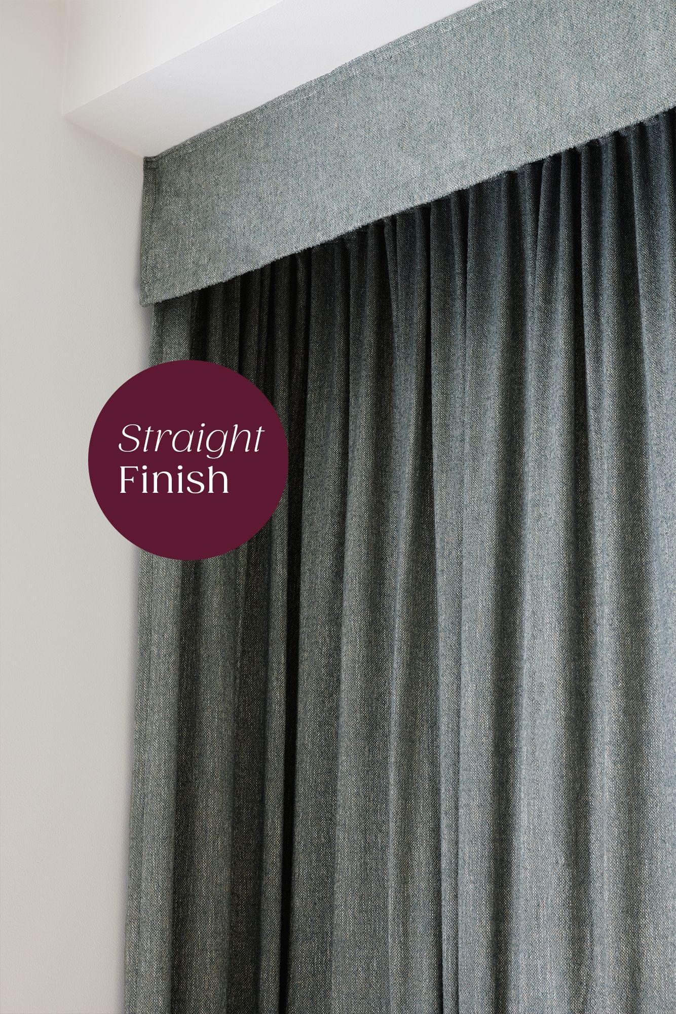 - Curtain Valance in Bouclé Petroleum with a straight finish.