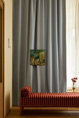 The blackout function is woven into the fabric, providing effective light blocking without the need for a blackout lining. The result is a curtain with a full, luxurious drape that looks equally beautiful from both sides. Pair with a sheer curtain for a hotel feel. Each curtain is tailor-made to your exact measurements in Gotain’s Swedish atelier and finished with a pleating tape that fits both tracks and rods. Also available as a Roman blind.