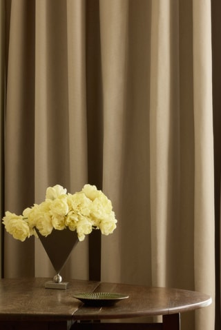 The blackout function is woven into the fabric, providing effective light blocking without the need for a blackout lining. The result is a curtain with a full, luxurious drape that looks equally beautiful from both sides. Pair with a sheer curtain for a hotel feel. Each curtain is tailor-made to your exact measurements in Gotain’s Swedish atelier and finished with a pleating tape that fits both tracks and rods. Also available as a Roman blind.